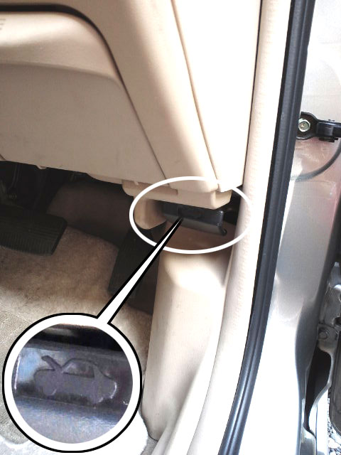 平べったいレバーなのでちょっと判りづらいですが、よく見るとボンネットのマークがありますよ~。
