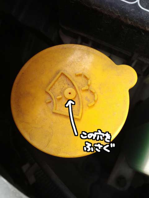 以前お話しましたが、このタイプのウィンドウウォッシャー液はフタの穴を指で塞いで、そのままフタを外すと残量のチェックができます。