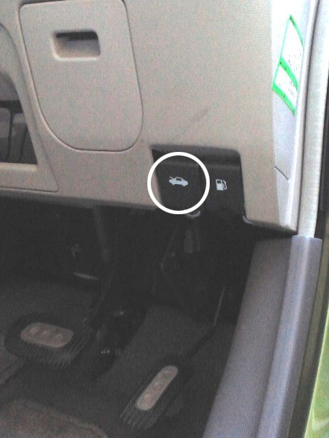 今までのと同じ様に、運転席の足元にありますが、ニッサンの場合は給油口のレバーも隣にあるコトが多いですかね。手前上に引いて下さい。