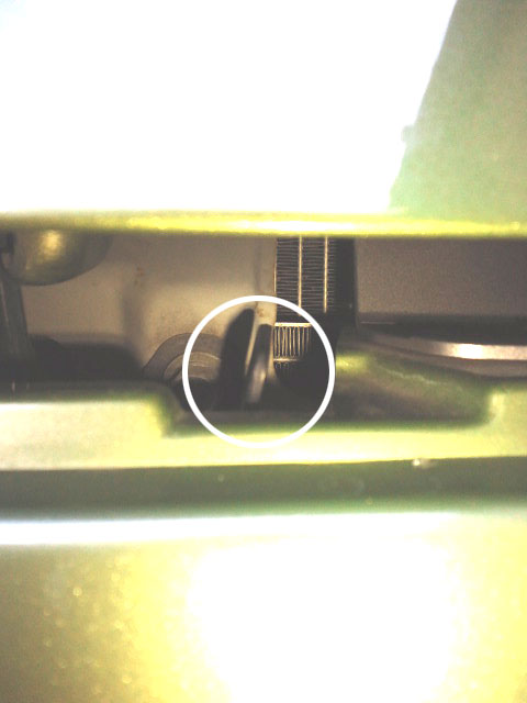 次にボンネットを固定しているフックです。ボンネットのニッサンロゴのやや右側にありますが、