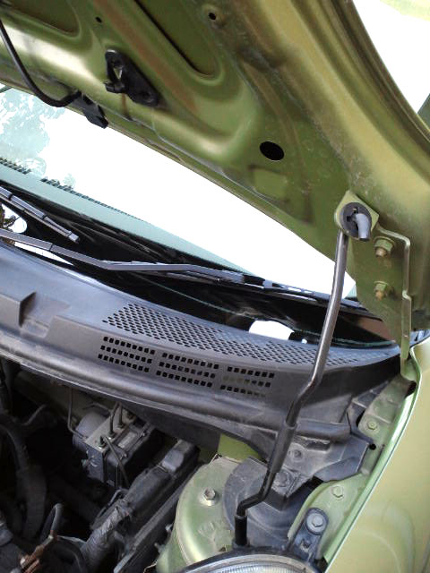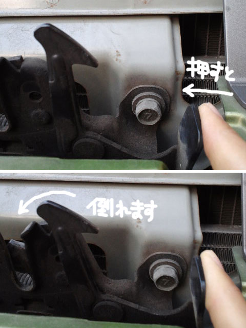 ボンネットを固定する棒は、ボンネット側に固定されています(上の○印)。