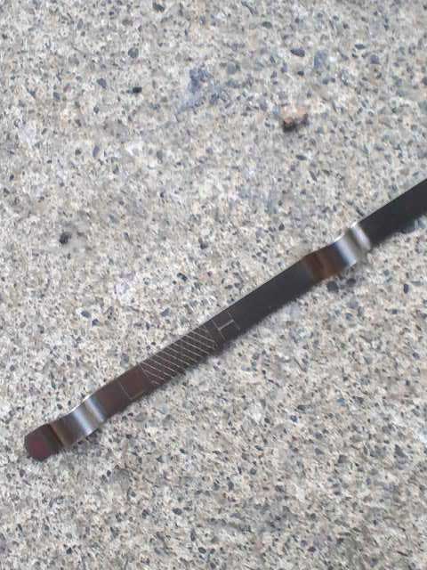 エンジンオイルのゲージ棒と違ってフックとステッカーが付いています。